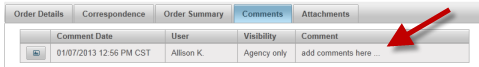 How to Add Comments to an Order | Comments are added to an order in the Comments section, from the Comments tab |