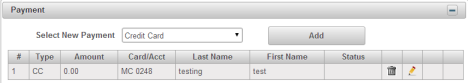 How to Enter Payment with a Credit Card | Credit Card payment information displays in the Payment section |