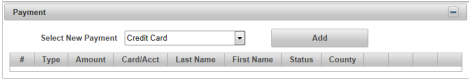 Select Credit Card from Select New Payment drop down. Note - Agencies that offer only 1 payment type default to that available payment type. |