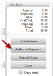 Authorize Payment button will display, click to authorize payment |