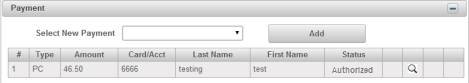 Authorized message appears: Payment Status changes to Paid in Full: Payment information in Status section displays Authorized