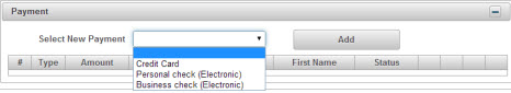 Select Personal Check from Select New Payment drop down. Note - Agencies that offer only 1 payment type default to that available payment type.