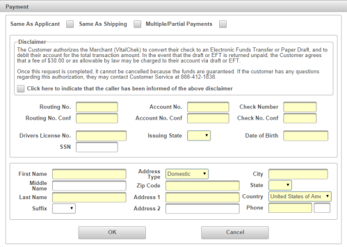 Note - SSN (Social Security Number) of the person making payment on the order (checking account holder) may be required based on Agency |