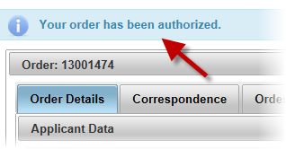 Order is authorized and the following is displayed: