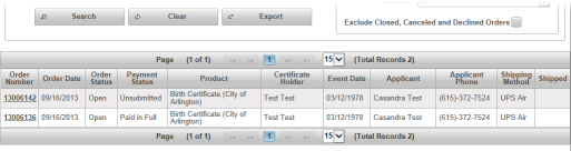 Orders may be searched by: Certificate Holder First/Last/Middle Name (Minimum of first 3 letters of the first name and first 3 letters of last name) Event Date Date of the death Rep ID The representative who requested the order State Date/End Date date span Client Reference Number Funeral Home specific identifying number