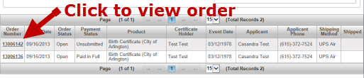 Search results are displayed. Click on highlighted Order Number to view order in Order Details screen