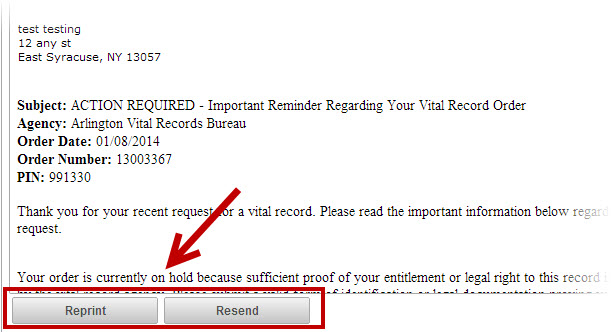 Click Reprint button to reprint previously sent correspondence or Resend to resend via email