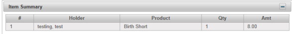 Item Summary | Contains information on the type of Certificate (or Product) and the quantity ordered. |