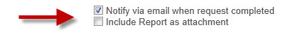 Notify via email box is checked by default.  Check Include Report as attachment to add the report to the email