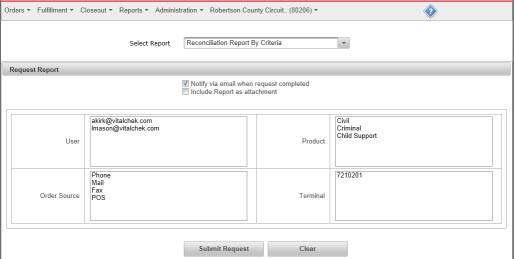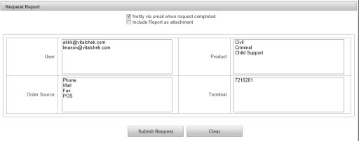Choose any addtional available criteria (i.e User, Order Source, Product, Terminal) by clicking available selection. If no criteria is selected, then all Users, Order Sources, Prodcuts and Terminals will be included.