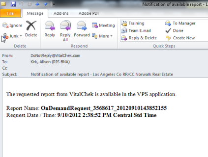 Note - if the Include Report as Attachment was selected (step 3), the report(s) will be attached to the email as a PDF.
